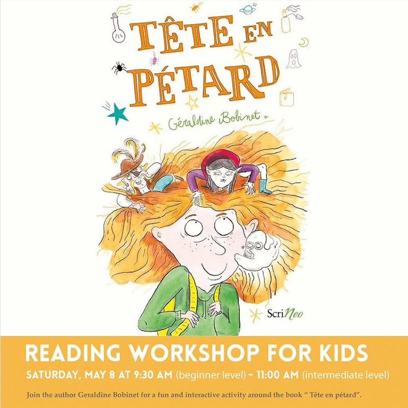 ⭐ Meet Geraldine Bobinet, author of the children’s book “Tête en pétard” and « Le potager de Fantôme Fatou »! 📚On Saturday, May 8th, she will embark your kids on a fun and interactive journey where they will discover her books. On the program: creation of a magic potion, drawing, creation of new expressions… Questions/answers with the author. 😃Free activity for kids (7-11 years old).
