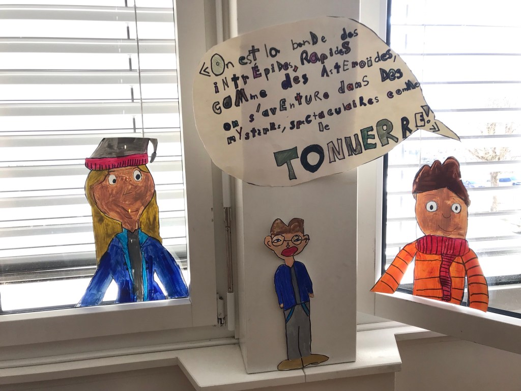 En mars, Géraldine Bobinet était à la tournée des auteurs et illustrateurs de La Bataille des Livres dans les classes suisses. Au programme : sessions de questions-réponses, lecture d’extraits, présentation de la chaîne du livre, jeux d’imagination et d’écriture !